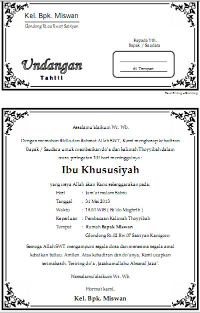 Jangan bingung bro,.. kini saya kasih contoh undangan tahlil dalam format pdf.